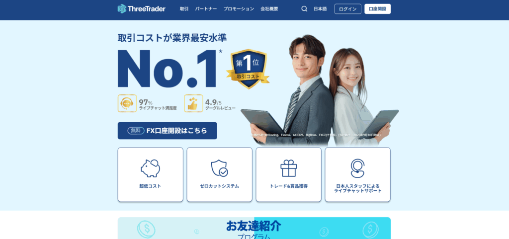 ThreeTrader | 初回入金完了後 1,500円(キャッシュバック) | 口座開設する【無料】 |