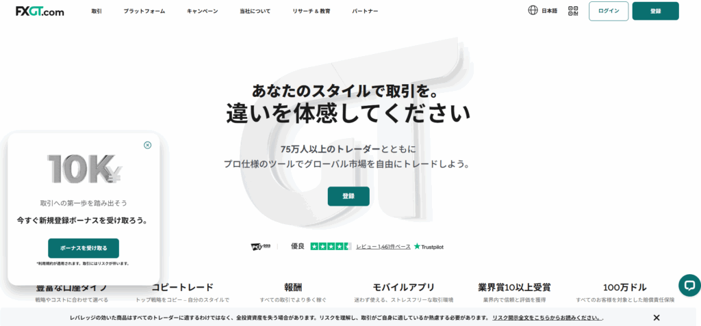 | 公式サイト | FXGT公式サイト |